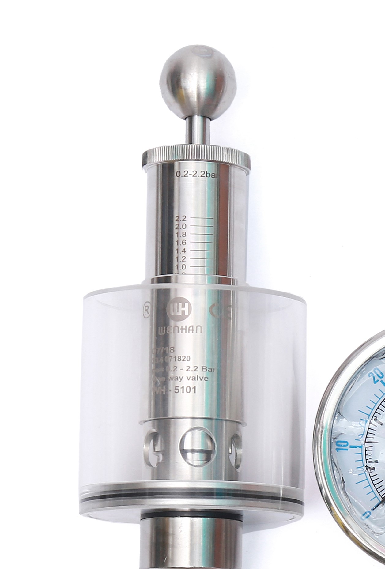 調(diào)節(jié)單向排氣閥保護容器壓力過高防爆作用,當壓力高于設定壓力(標準1BAR)時可以排氣,反之關閉,調(diào)節(jié)桿標上壓力刻度,所需壓力按刻度上調(diào)整,該閥門使用方便,刻度準確,玻璃罩加水能看到發(fā)酵效果,減少染菌。同時也可以滿足于各種生產(chǎn)工藝需求,適用于各種食品加工,啤酒,飲料以及制藥等各種工業(yè)領域。